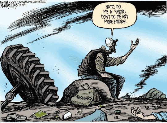 Es war dasselbe Szenario wie in Libyen, Irak und Afghanistan, es begann mit der Dämonisierung des Regimes und jede Menge Lügen, Unterstützung radikaler militanter Gruppierungen und dann wurden die Menschen Bomben- und Raketenangriffen ausgesetzt. Was die NATO in Serbien verbrochen hat, ist nichts anderes als nackter Terror. Die Bombardierung endete am 10. Juni 1999. Aber der Krieg der Terrororganisation NATO gegen serbische Zivilisten wurde danach mit anderen Mitteln fortgesetzt. An dem Tag, an dem die NATO und die serbische Militärregierung einen Waffenstillstand unterzeichneten, wussten die Serben, dass der NATO „Friedensprozess“ sich in eine „Friedens Farce.“ verwandeln würde. Am 10. Juni verabschiedete der UN Sicherheitsrat die Resolution 1244 und schickte 37.300 KFOR Soldaten aus 36 Ländern mit dem Auftrag, für Frieden und Sicherheit zu sorgen.