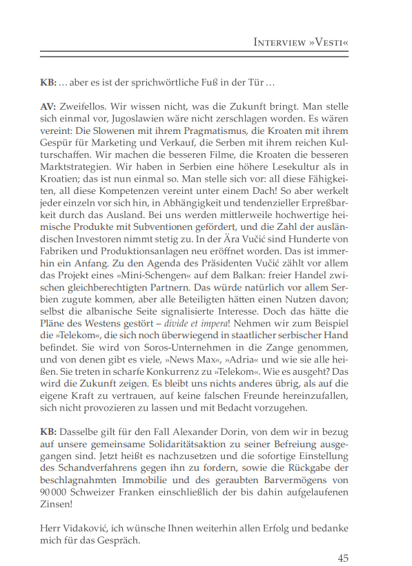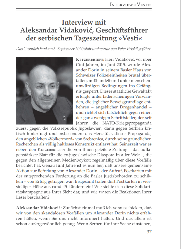 Interview mit Aleksandar Vidakovic, Geschäftsführer der serbischen Zeitung – Vesti – zum Fall Alexander Dorin